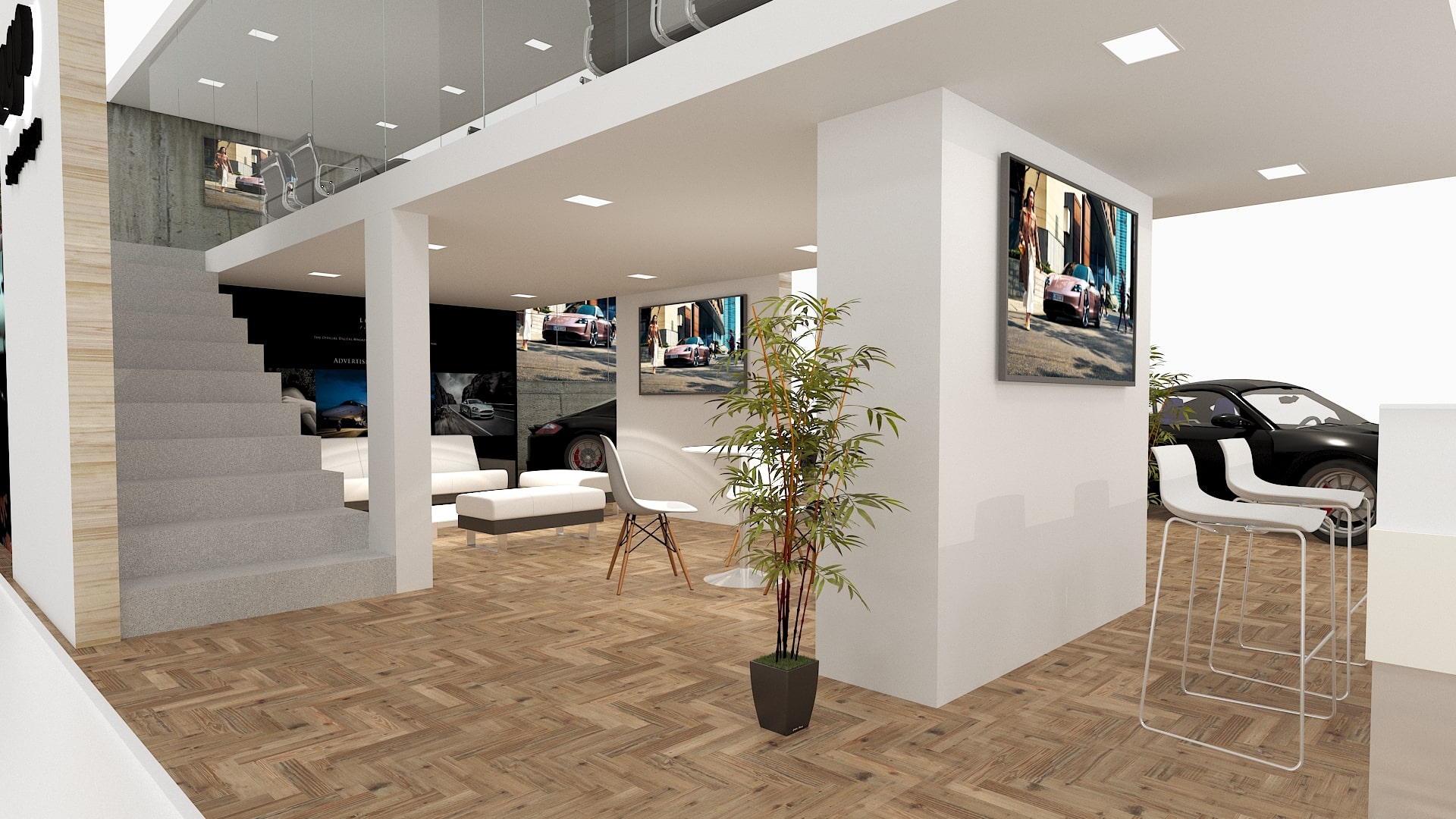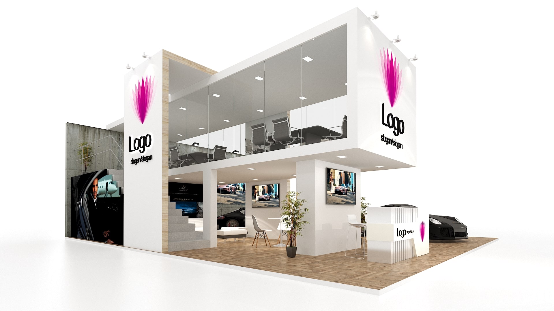 The stand area can be increased or decreased to adjust measures. The furniture, accesories, graphics, colors, flooring and finishes are optional and/or modifiable.